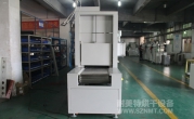 2、外形尺寸(約):總長10200mm*總高1770mm(不含馬達高)*總寬1050mm,地面到網(wǎng)帶的高度為900mm,內(nèi)寬為650mm,進料高度為500mm;烘干部分總長8000mm,分4段,每段2000mm,烘干區(qū)前后設(shè)有自動升降門;出口處需設(shè)有阻擋氣缸和治具感應(yīng),可以自動和手動運行。可以手動清板,把機內(nèi)托盤手動放出。